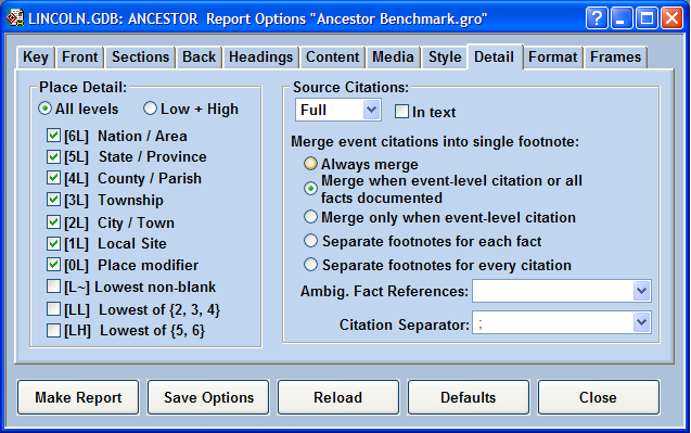 While the Content page provides control over what data elements to include on the report, the Detail page allows you to control the specific sub-parts or "detail" for some of the data elements.